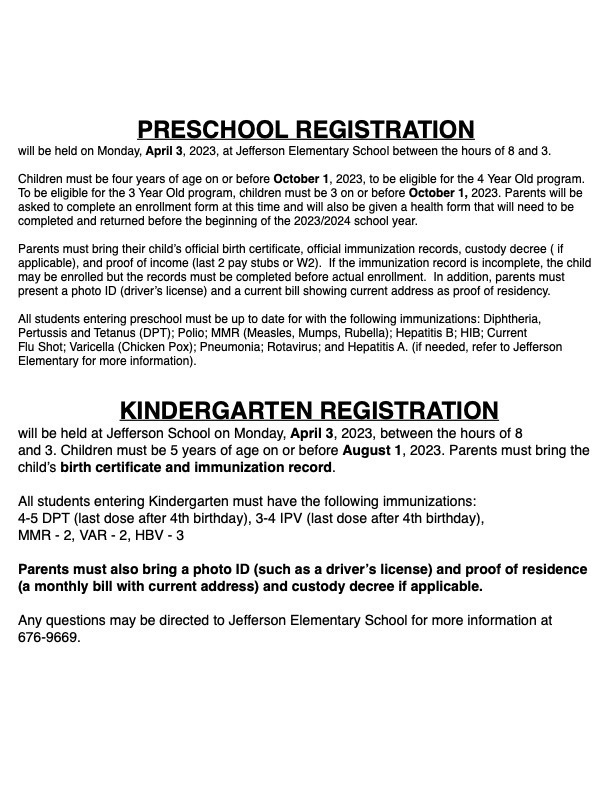 Preschool & Kindergarten Registration Dates Announced Update